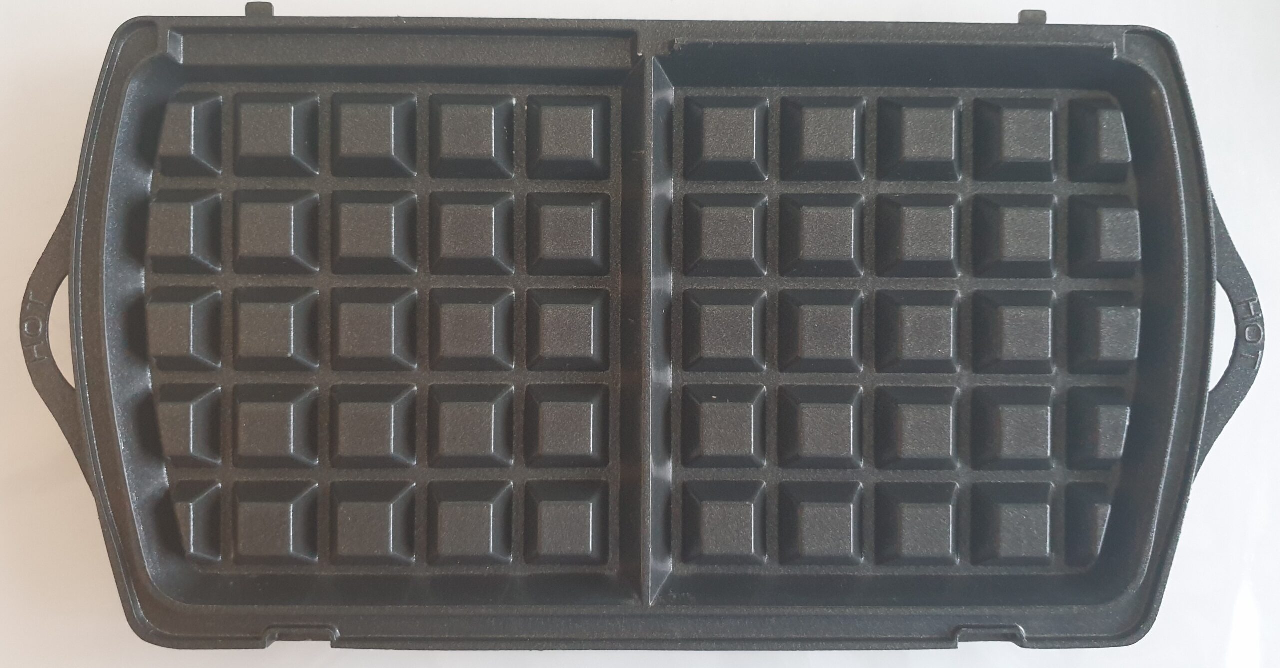 2. Las sandwicheras multifunción  son las que considero más versátiles. Suelen traer diferentes placas formateadas para gofres, parrilla y sándwiches, lo que permite utilizarlas a menudo y según nuestras necesidades. Tienen la enorme ventaja de que estas placas se desmontan simplemente empujando las dos pestañas que hay en cada placa y se limpian perfectamente una vez se ha dejado enfriar ¡claro! para no quemaros. Además, la que os aconsejo, no ocupa mucho espacio pese a que sí, las placas también hay que tenerlas en cuenta pero se pueden apilar con cuidado para que no se arañen en sus propios cartones.sandwicheras: abierta con placa parrilla