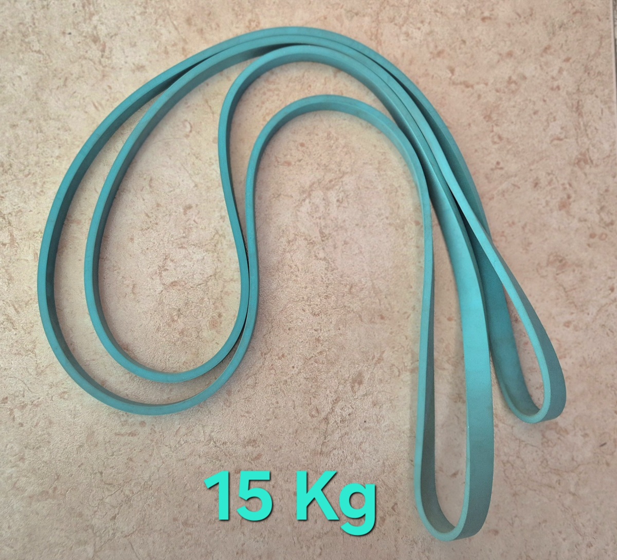 ■ Hay diferentes tipos de gomas según el grosor, elasticidad de la banda y resistencia que ofrezcan. Varios de los ejercicios mencionados anteriormente, como las sentadillas, se pueden practicar poniendo más resistencia si se emplean gomas y en otros casos, como en las dominadas, éstas nos ayudarán a poder llevarlas a cabo. Normalmente, la resistencia de las gomas se expresa en kilogramos, y cuanto mayor es el número, más esfuerzo se requerirá, 15Kg, 25Kg, 35Kg…  En ocasiones se refleja como resistencia ligera, moderada y fuerte siendo apreciable la mayor o menor dificultad en el uso de cada una de ellas. En la foto que os muestro, la verde es la ligera, la amarilla, la media y la roja, la fuerte. Como veis, se pueden realizar muchos ejercicios de los que hemos mencionados utilizando alguna de ellas para que os suponga mayor esfuerzo.
