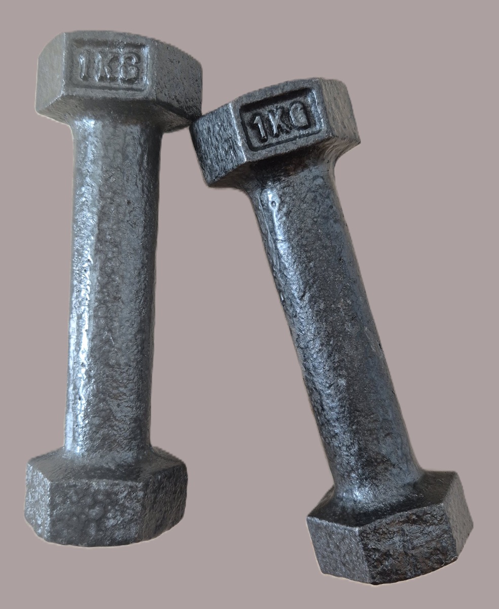 ■ Para comenzar, es preferible hacerlo con pesas de poco peso, bien de las que se pueden agarrar con la mano o, si las tenéis de otras actividades como pilates, las de velcro. También existen las mancuernas con las que se puede ir modificando el peso en cada uno de los extremos.